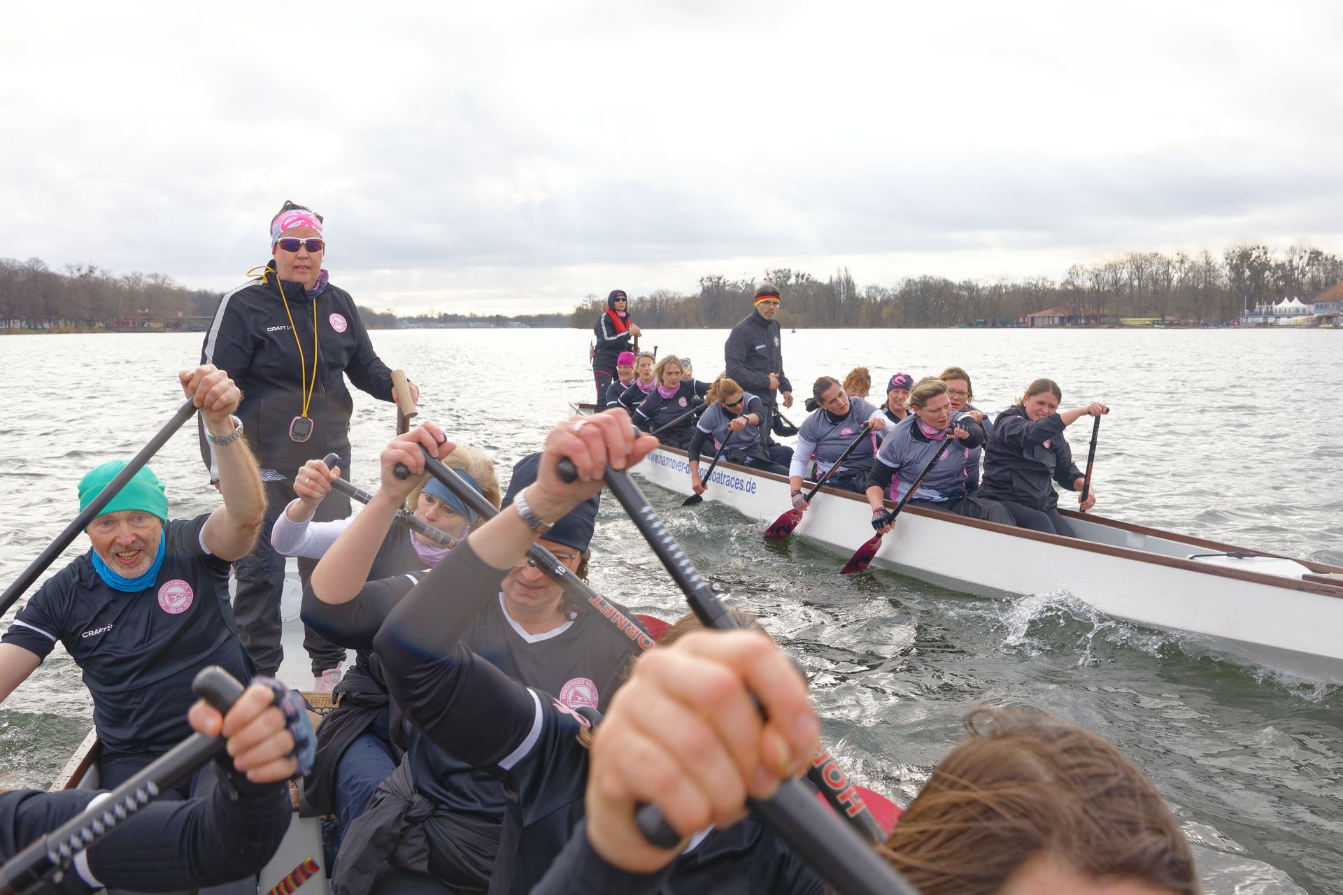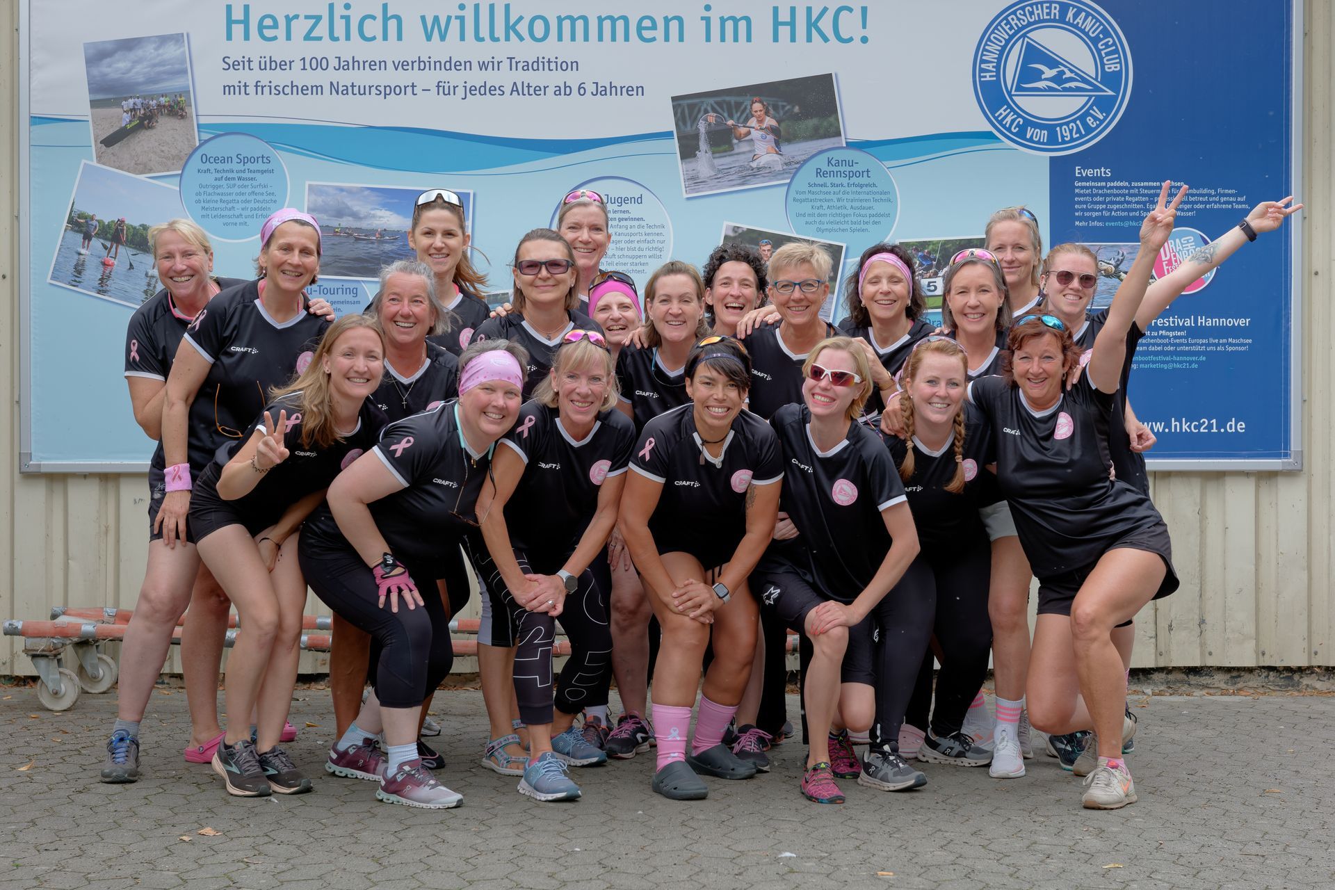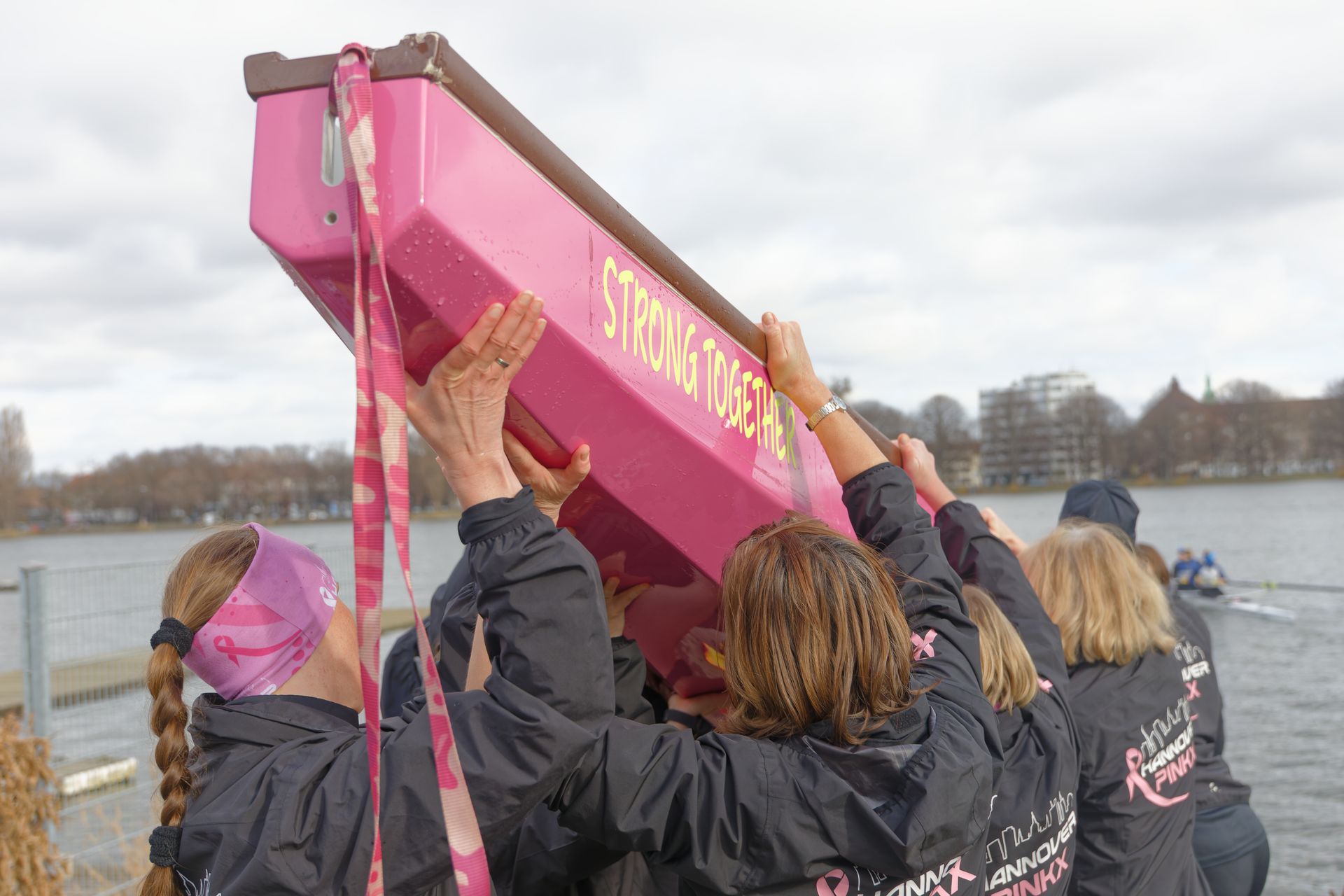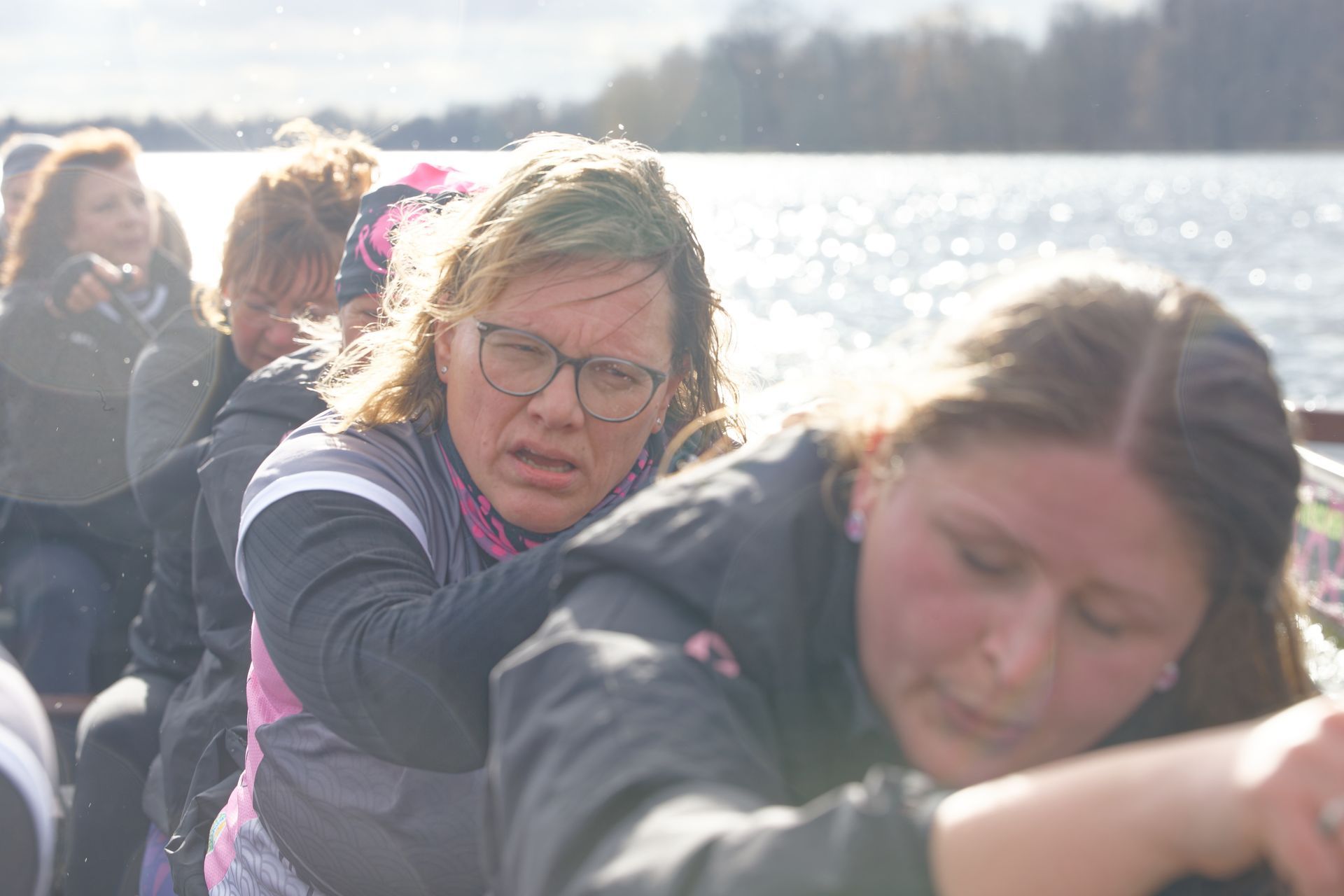 Pink Paddling wurde ende der 1990er Jahre von einem kanadischem Arzt initiiert um Frauen mit Brustkrebs zu helfen. Die Bewegungen beim Paddeln hilft den Patientinnen in vielerlei Hinsicht und der psychologische Effekt ist enorm. »Wir sitzen alle im Selben Boot« Erzählt mir die Kapitänin der PinkX.