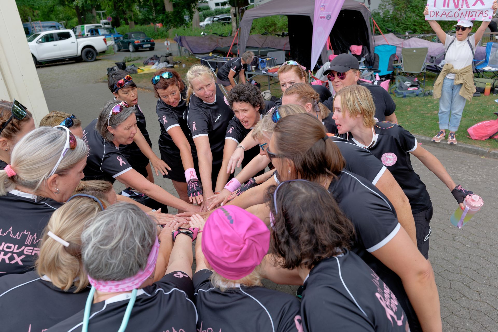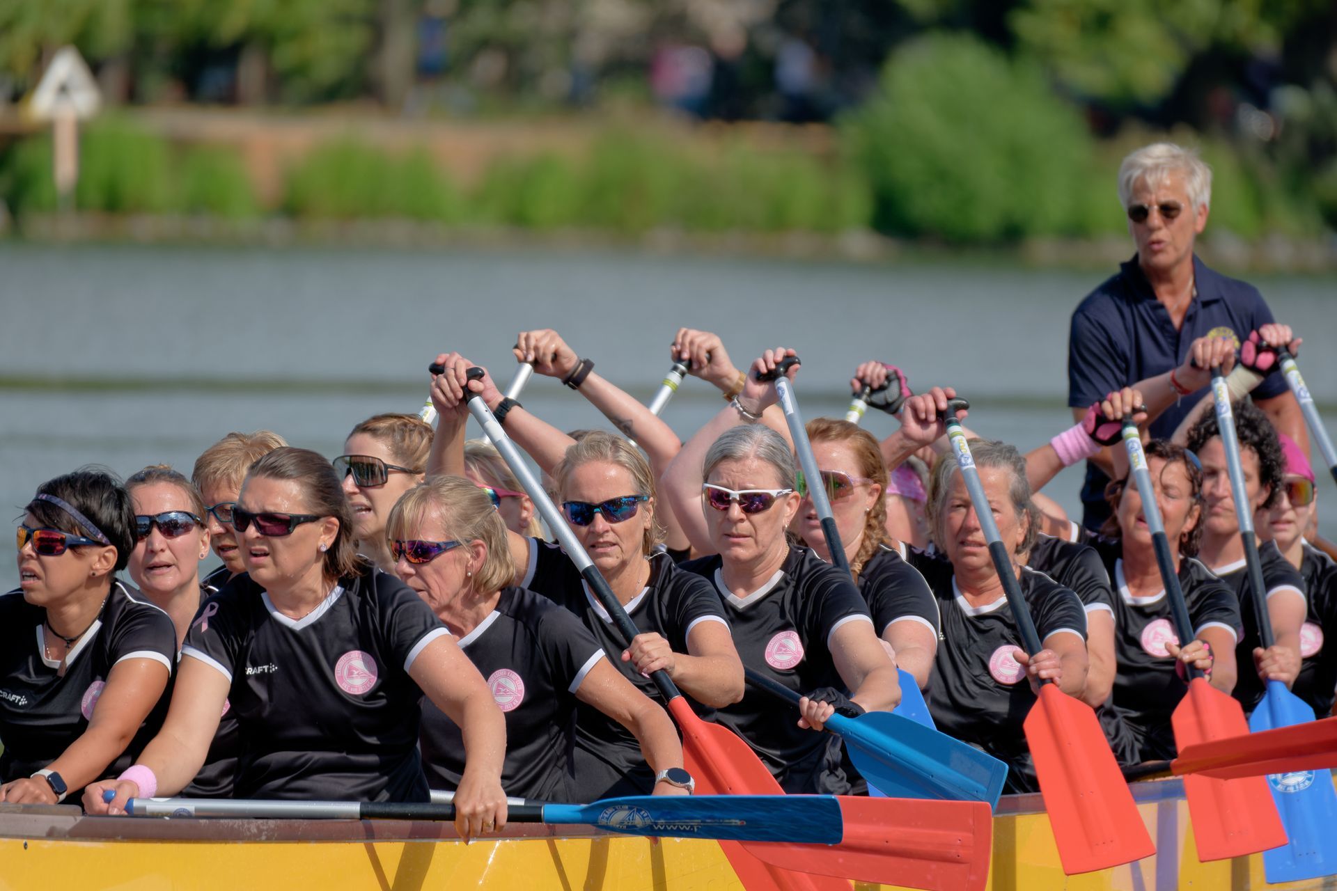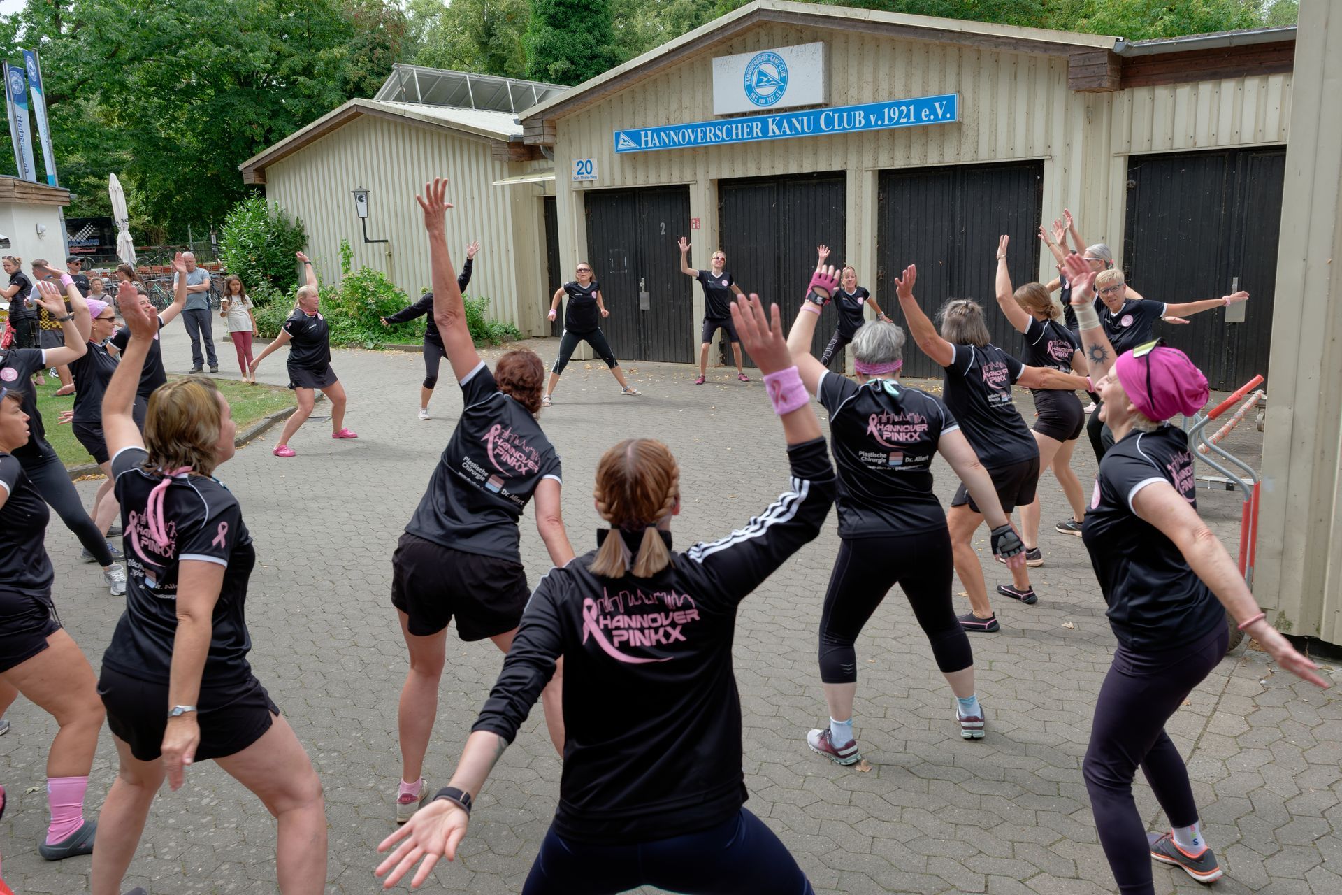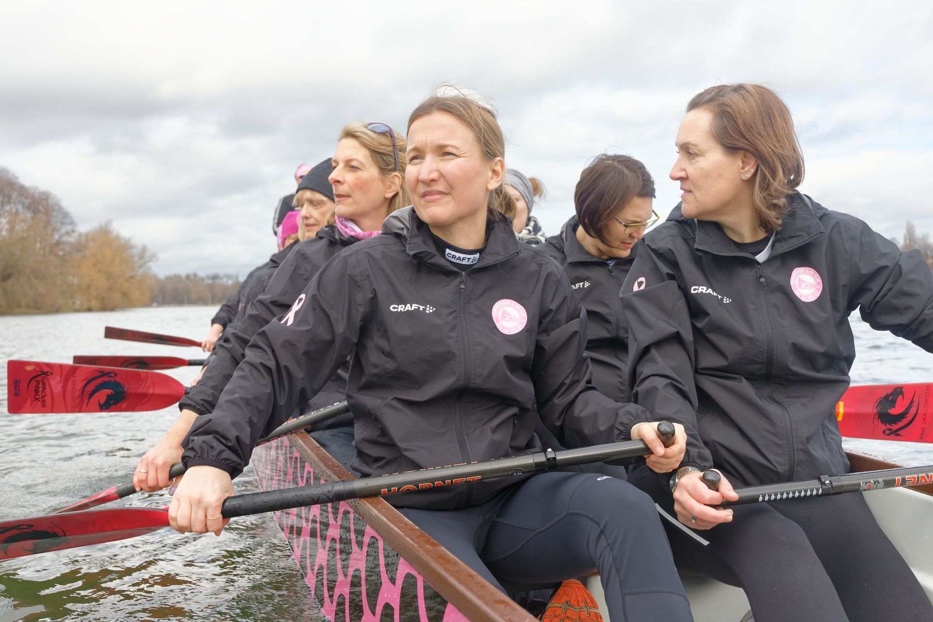 Pink Paddling wurde ende der 1990er Jahre von einem kanadischem Arzt initiiert um Frauen mit Brustkrebs zu helfen. Die Bewegungen beim Paddeln hilft den Patientinnen in vielerlei Hinsicht und der psychologische Effekt ist enorm. »Wir sitzen alle im Selben Boot« Erzählt mir die Kapitänin der PinkX.